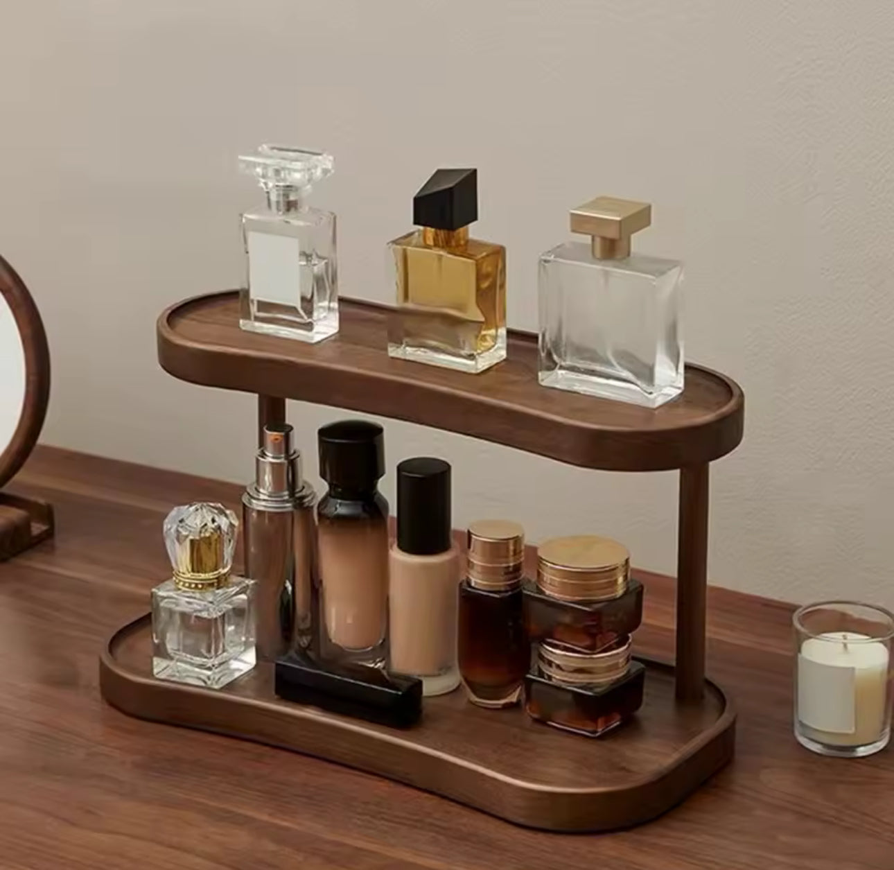 Wooden Display Rack with Storage – Double-Layer Organizer Shelf